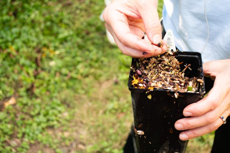 Elliot Van Nice '27 throws her trash in the W&L compost bin.
